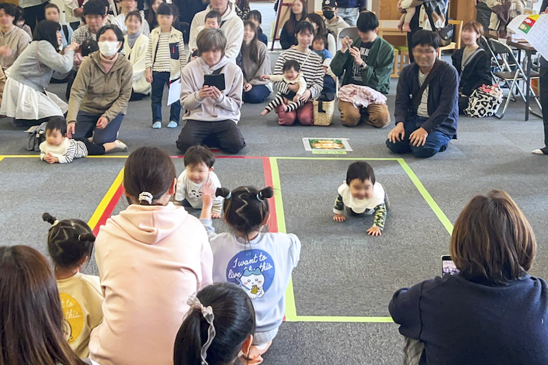 約20人の赤ちゃんたちがハイハイやずりばいでゴールを目指す人気企画です。