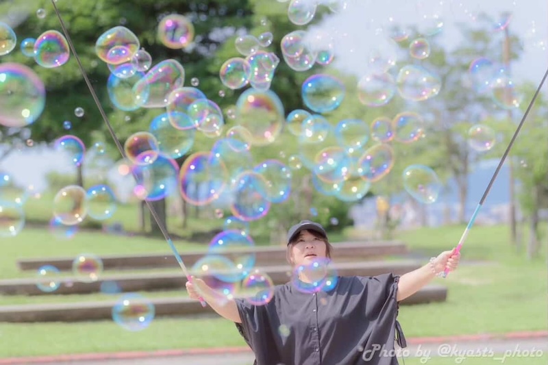 佐賀県を中心に活動するパフォーマンスチーム『Smiling Saga branch』出演。圧巻のシャボン玉ショーに加え、14:30〜は体験コーナーも行います。
