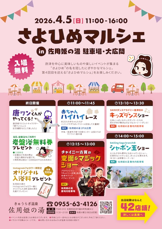 その一つが、今年で第4回目を迎える「さよひめマルシェ」です。年々パワーアップしているこのイベントで、今年もたくさんのお客様の笑顔に出会えることを楽しみにしています。