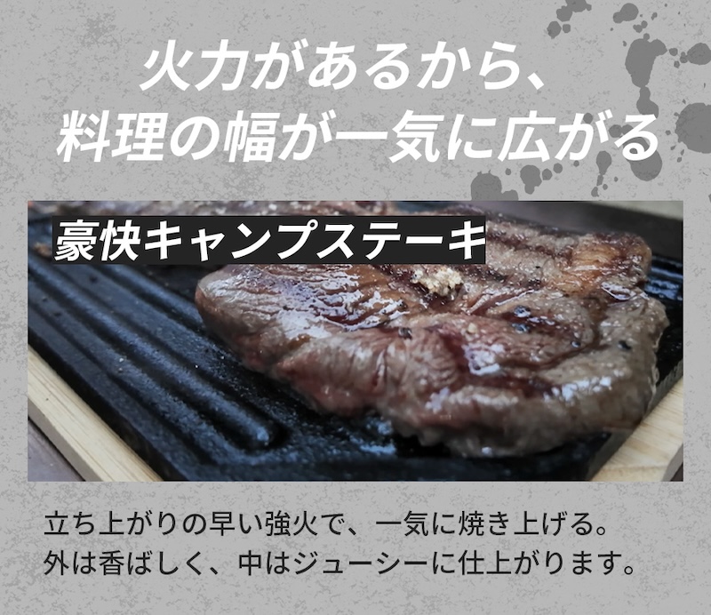 炭を使用することで火持ちが良く、温度が安定し、焼き料理や鉄板調理も快適に行えます。