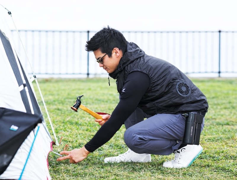 リキッドウインドは冷却システムとしてツーリング用途に最適である一方、ファン付きウエアと併用すれば走行風がない状況でも冷却効果を発揮します。キャンプ、釣り、屋外作業、通勤、車の洗車やガレージ作業など、幅広いレジャー・業務シーンでの猛暑対策として活躍します。