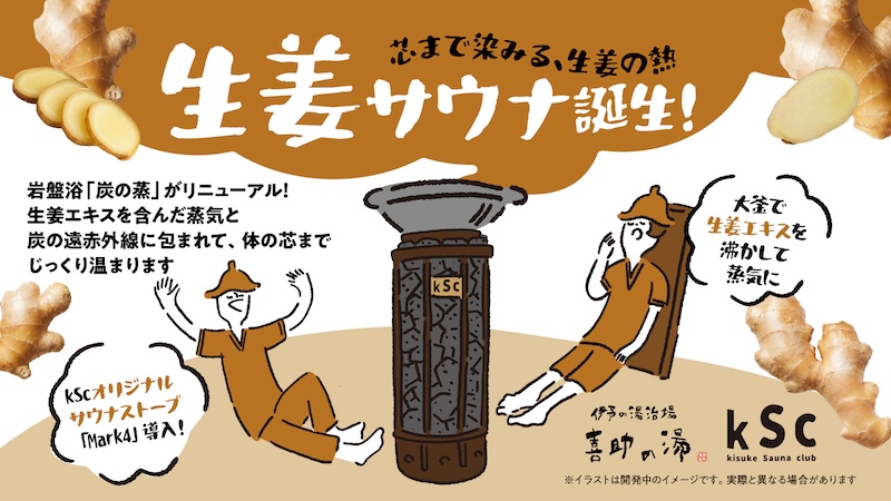 伊予の湯治場 喜助の湯」では、岩盤浴エリアの人気コンテンツ「炭の蒸」をリニューアルし、新たに“生姜サウナ”として、2026年2月22日(日)より提供を開始いたします。