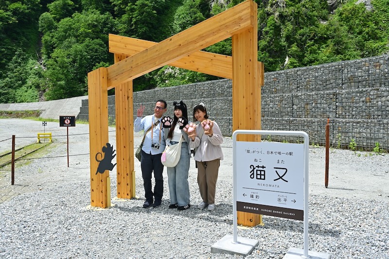 「猫又駅」は通常一般のお客さまは降りることができない工事関係者専用駅ですが、宇奈月駅~猫又駅往復の期間限定で降りることができます。また日本で唯一”猫”がつく駅と言われており、今だけの貴重な体験をお楽しみください。