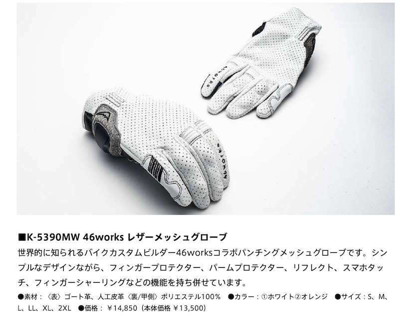 待望の新作グローブの入荷も少しずつ始まりました。今シーズン、メッシュモデルも含めると全7モデルを展開いたします。よりリニアな操作を可能にすべく、細かい部分を見直しました。タイトなフィッティングを実現することで、安全で快適なライディングをかなえます。また、世界的に知られるバイクカスタムビルダー46works代表の中嶋志朗氏とのコラボによるグローブも新しく登場します。