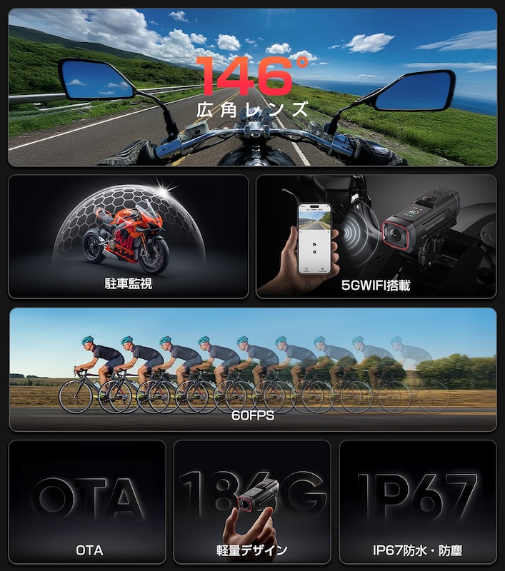 AKY-730Proはただ「記録する」だけのカメラではない。 広角レンズで広い視野をカバーし、スマートフォンとWi-Fiで繋がり、OTAによる継続的なアップデートで進化し続ける—— ライダーのデジタルパートナーとして設計された一台。