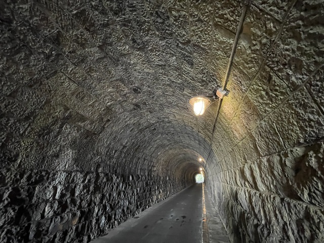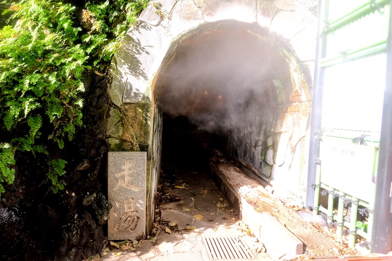 そしてそのままバイクで海の方に降りていくと、約1300年前に発見されたという日本三大古泉の走り湯があります。洞窟の奥で湯が湧き出ており、さながらサウナのようでもあります(入場無料)。