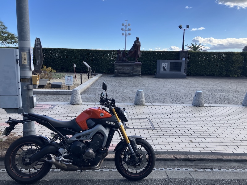小田原厚木道路から西湘バイパスに入り、海沿いを走る国道135号線に入里ました。この辺りはキラキラと光る相模湾を眺め走れる個人的にお気に入りの区間です。但し、バイクを止めて海を眺められる場所が少なく、そんな中では国道が上下線に分かれる所にある小さな駐車場(WCあり)はお勧めです。