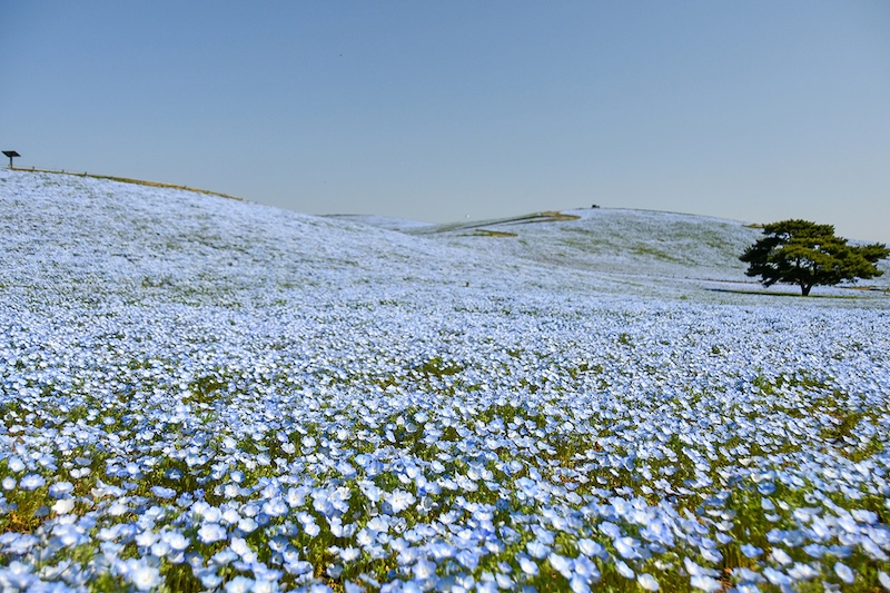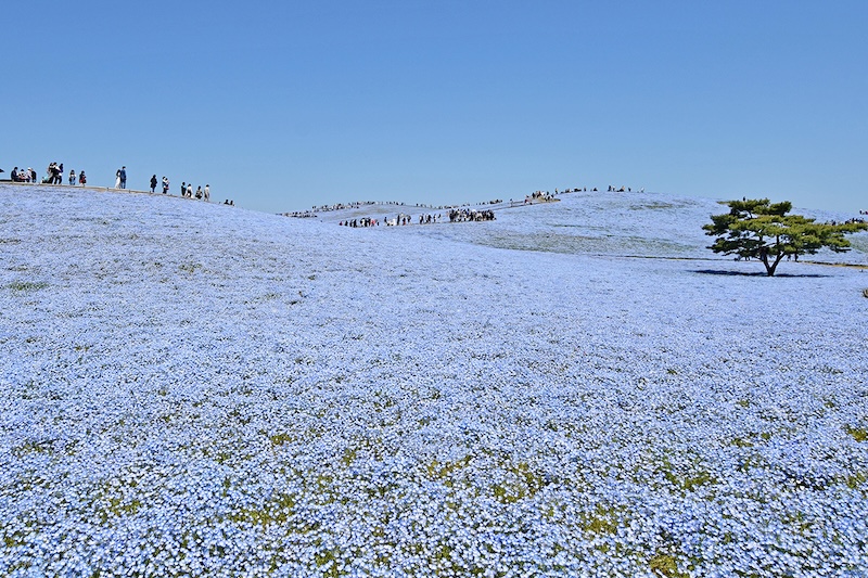 ※ネモフィラの開花時期は多くのお客様にご来園いただいています。混雑が予想される土日・GW期間やお昼前後の時間帯を避けた分散来園に、ご協力をお願いいたします。