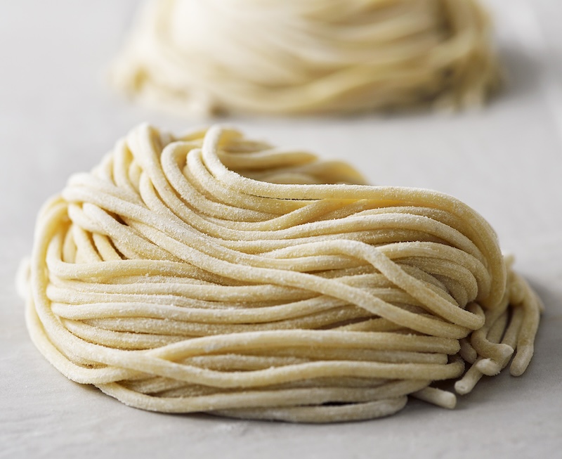 淡路島産デュラム小麦のセモリナ粉と北海道産小麦粉をブレンド。水だけで打ち上げた生地を丁寧に熟成し、直径3ミリの特注の切り刃でカットした極太麺です。モチモチ食感が特徴のイタリアはシエナ発祥の「ピチ(Pici)」と呼ばれるパスタをモデルに、麺づくりに徹底的にこだわりました「ピチ(Pici)」専門店です。