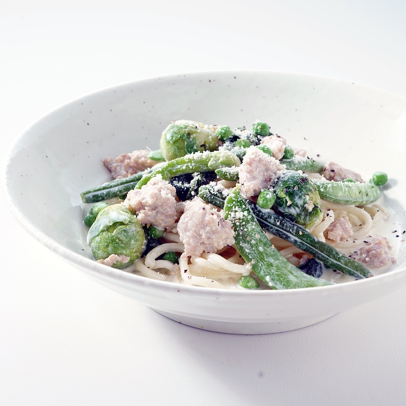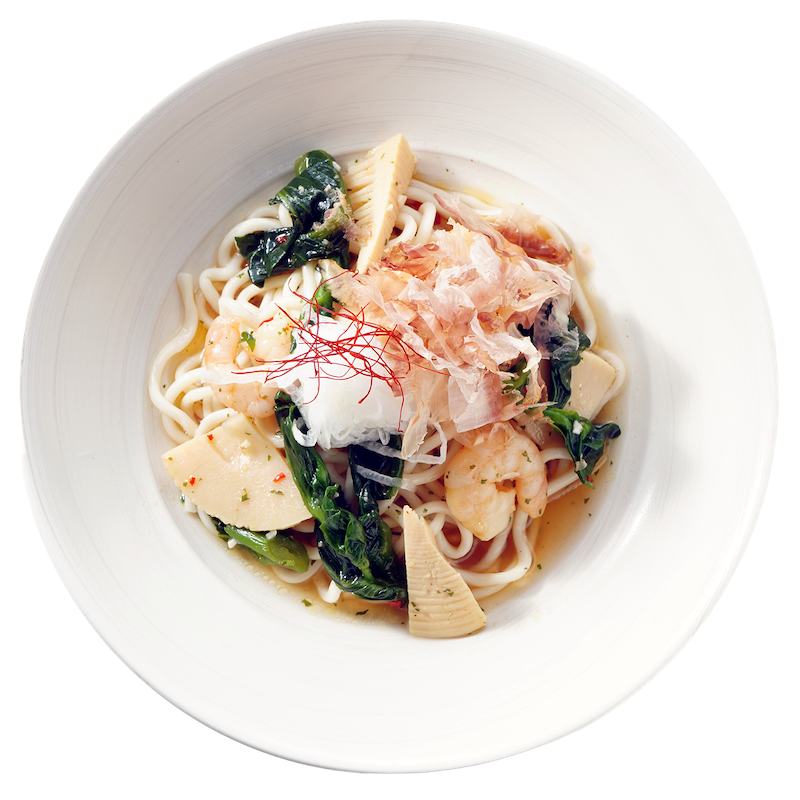 春の味覚であるタケノコと菜の花に、甘みの乗った新玉ねぎを合わせ、香ばしいにんにくと唐辛子で軽やかに仕上げた和風ペペロンチーノです。シャキッとしたタケノコの食感、菜の花のほろ苦さ、新玉ねぎのやさしい甘みが調和し、春ならではの香りが広がる一皿です。
