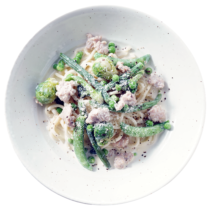 淡路どりの旨味と春野菜の瑞々しさを、出汁香るクリームソースで上品にまとめた季節のパスタ。 芽キャベツや菜の花など、春の味覚を贅沢に散りばめ、素材本来の甘みと香りを引き立てています。和の余韻が広がる、春だけの特別な一皿です。