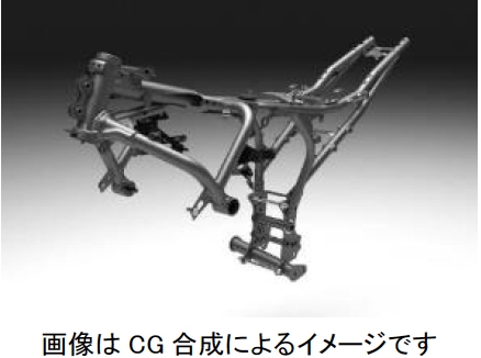 バックボーン型高張力鋼管フレームは、パイプワーク、径、肉厚、板金などを最適化。これにより従来モデル同等の重量を維持しながら、ねじれ・縦・横の各剛性を向上させ、優れたスタビリティに貢献させています。左右非対称形状のリアアームは、上面を削ぐようなカットを施すなどデザインを一新。あわせてリアサスペンション後端を支持するリンクも見直し、ブラケットの板厚を変更、優れた安定性の実現と接地感の向上を図りました。