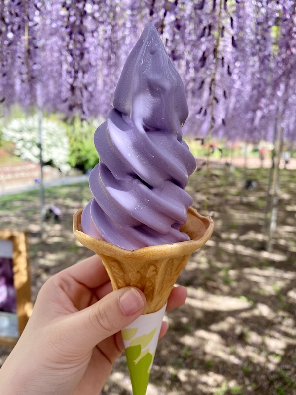 甘く華やかな藤フレーバーのソフトクリームです。