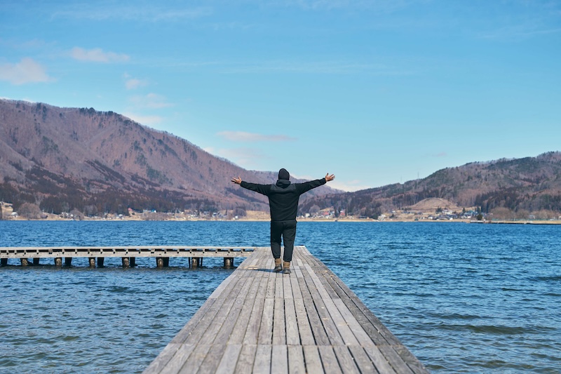 17桟橋を歩けば、360°湖に囲まれた不思議な感覚に。 透明な湖は、桟橋を駆け抜けて飛び込みたくなる衝動に駆り立てられます。