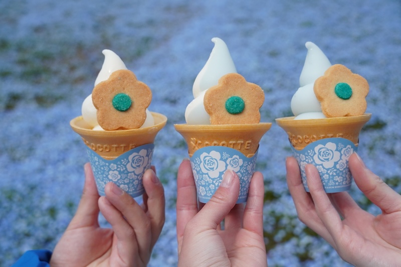 ネモフィラとあわせておすすめしたいのが、春限定のネモフィラグルメです。大好評の「ネモフィラブルーソフト」や「児玉冷菓のババヘラアイス『ネモフィラ』」など、人気のスイーツが勢ぞろいします。