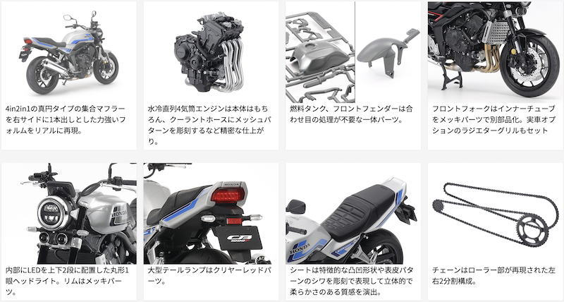 本製品は「Honda CB1000F」の特徴的なスタイルとディテールを1/12スケールで精密に再現したプラスチックモデルです。