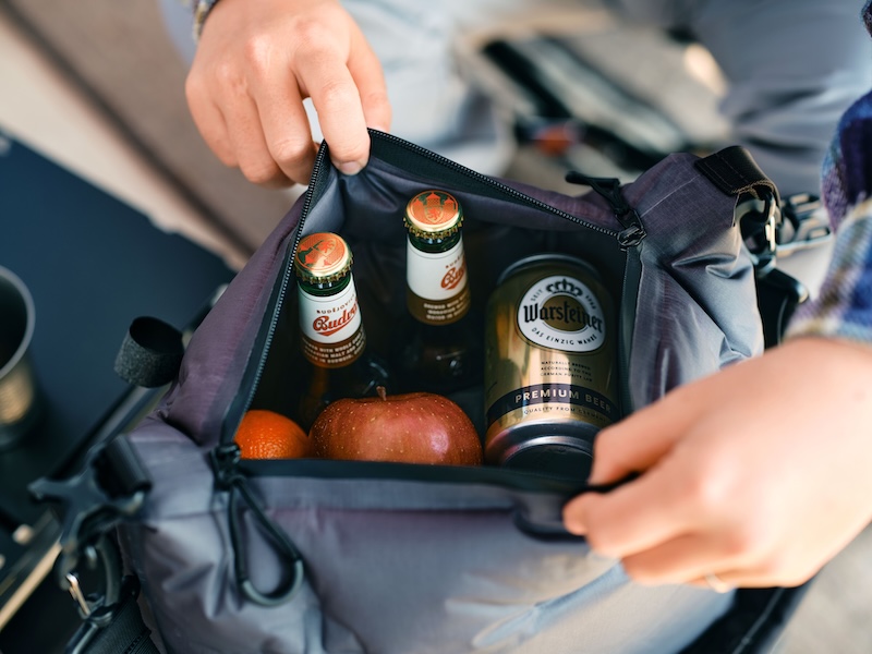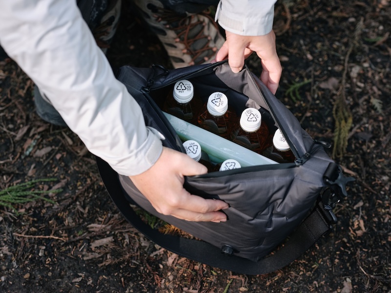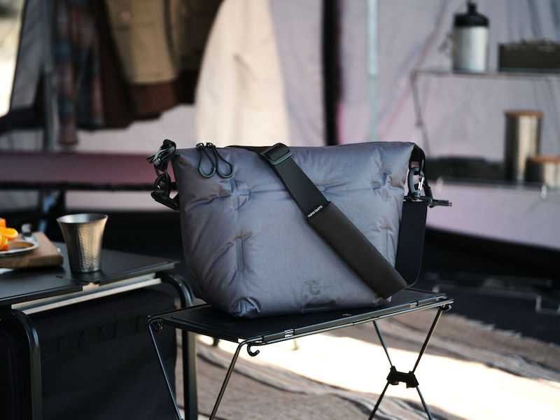 また、500mlペットボトル6本を収納可能なサイズ設計としながら、使用後は空気を抜くことでコンパクトに収納可能。ショルダーと手持ちの2WAY仕様により、持ち運びやすさにも配慮しています。