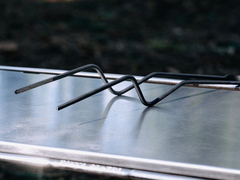 先端には二段構造を採用。細い枝をつまむ繊細さと、薪をしっかり保持する力強さを両立。板厚設計も最適化し、強度・反発力・操作性のバランスを高次元で実現しています。