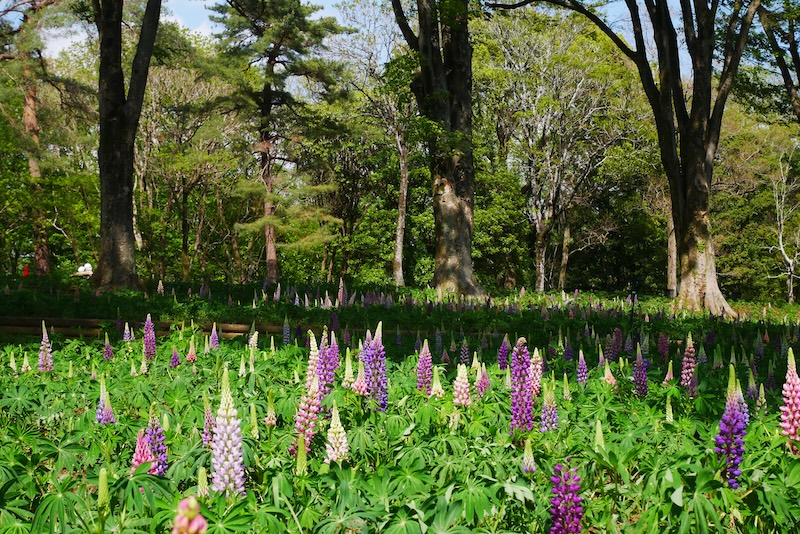 中央口から徒歩約15分の「公園・庭園樹園」では、約10万本のルピナスが咲き始めました。見頃は4月下旬頃になる見込みです。