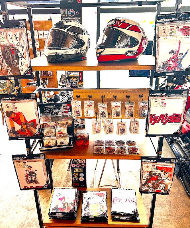 さらに、作中に登場するNS400R及びSHOEIが過去販売していたコラボヘルメットも本企画を彩るアイテムとして展示します。