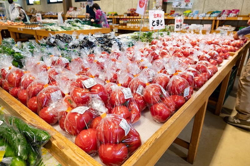 併設する地場物産館桜国屋には、ネモフィラを育てた若手農業者や市内生産者の新鮮野菜が並びます。