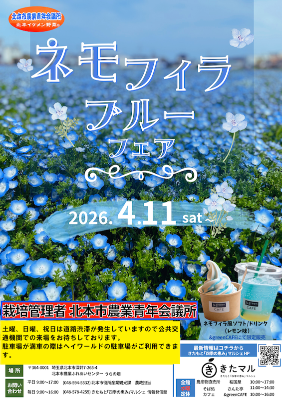 「きたもと『四季の恵み』マルシェ」裏で一面のネモフィラが見られます!