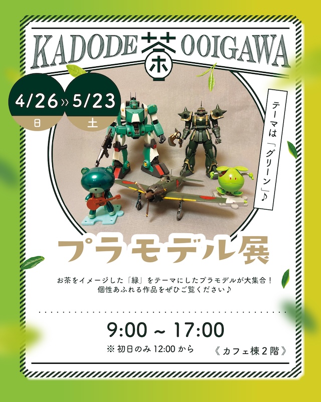 お茶をイメージした「緑」をテーマに、プラモデルが大集合!個性あふれる作品をぜひご覧ください。