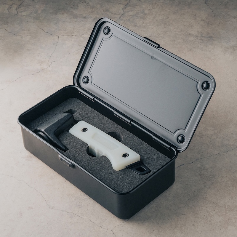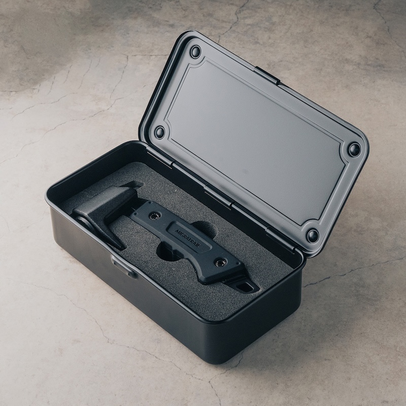 フィットハンマー専用のツールボックス付きをラインナップ。TOYOスチールとコラボレーションした、MIGRATRAILオリジナルデザインのツールボックスと専用フォームが付属。専用フォームを外すことで、ペグなどを収納できるハードタイプのギアボックスとしても使用できます。MIGRATRAILのペグ「ヘキサステーク」は、ジャストフィットで10本収納可能。フィットハンマーとツールボックスは、使い込むほどに味わいが増していきます。