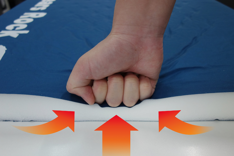 ※同条件で荷重をかけた際の比較 左:空気のみ構造 右:ウレタン内蔵構造