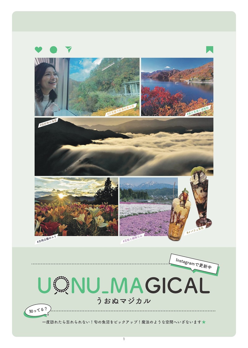 2022年10月に11年ぶりで全線再開通した「世界一ロマンチックな鉄道」といわれる只見線、「枝折峠の滝雲」や「魚沼の雪流れ」をはじめとする四季の絶景、「生もつ焼き」に代表されるオリジナルの食文化など、盛り沢山な地域の魅力を発信して「魚沼推し」のファンを拡大するため、リリマリプロダクション(※)のインフルエンサーの協力を得て、このたびインスタグラム「uonu_magicl(うおぬマジカル)」を開設しました。