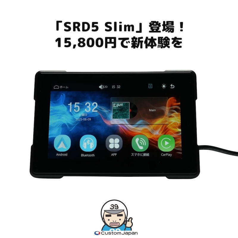 ツーリングに最適!CarPlay・Android Auto対応スマートライドダッシュボード「SRD5 Slim」登場!実用性重視の薄型5インチモデルが15,800円でカスタムジャパンから発売