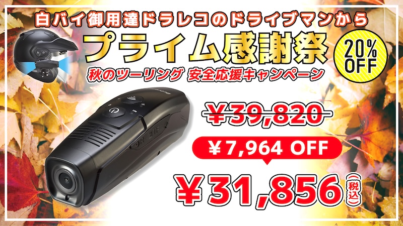 秋のツーリング、前方・後方の“死角”と“暗闇”を撃退。前後同時録画・超高感度センサー搭載ヘルメットカメラ「Driveman DD-1000」、プライム感謝祭に登場。
