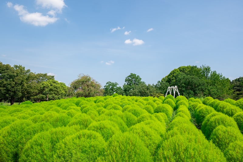 緑のコキアが見頃!盛夏のふわふわグリーンを楽しもう(国営昭和記念公園)