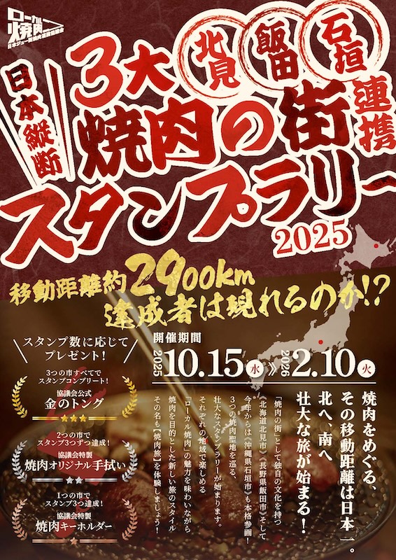 総移動距離2900km超!日本一長距離な焼肉スタンプラリー開始!北海道・長野・沖縄の“ローカル焼肉聖地”を巡る「3大焼肉の街スタンプラリー」販売開始