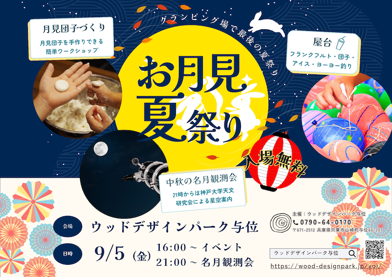 【神戸大学天文研究会×グランピング施設が届ける、夏の終わりの特別な夜。イベント開催決定】 澄んだ空に浮かぶ名月と、焚火や縁日を楽しむ贅沢なひととき 2025年9月5日(金)、兵庫県宍粟市のグランピング施設「ウッドデザインパーク与位(よい)」にて、... -