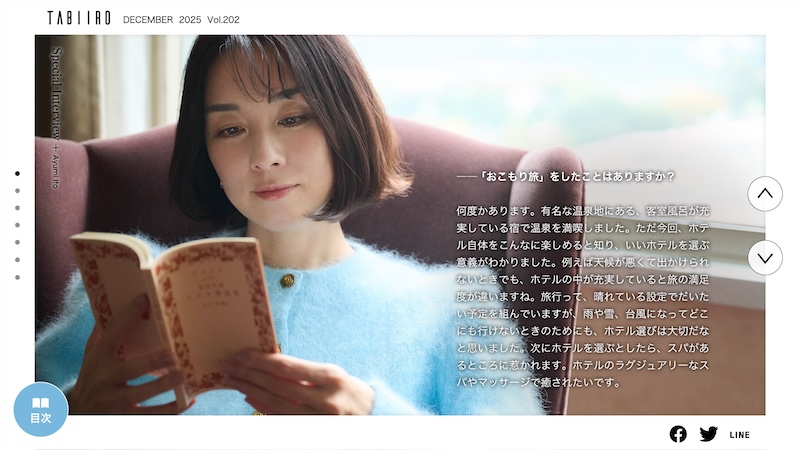 【創刊18周年】伊藤 歩さんが「帝国ホテル 東京」でホテルステイを満喫「月刊旅色」12月号公開