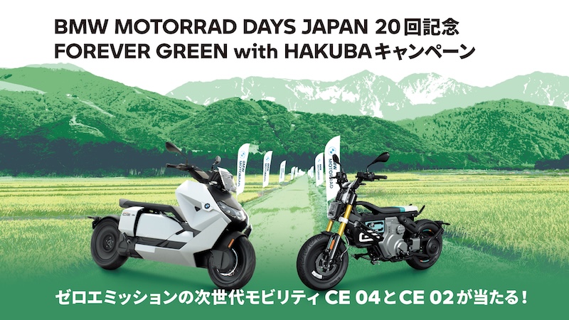 【FOREVER GREEN with HAKUBAキャンペーン 9月6日(土)より応募開始】 ビー・エム・ダブリュー株式会社は、2025年9月6日(土)より、「BMW MOTORRAD DAYS JAPAN 2025」20回目の開催を記念した特別企画「FOREVER GREEN with HAKUBAキャンペーン」を開始し... -