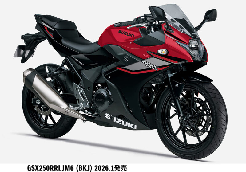 スズキ株式会社は、街乗りにおける日常的な扱いやすさとスポーティーなスタイリングを特長としている250ccロードスポーツバイク「GSX250R」のカラーリングを変更して2026 年1 月9 日より発売します。 「GSX250R」の搭載する248cm3の2 気筒エンジンは... -