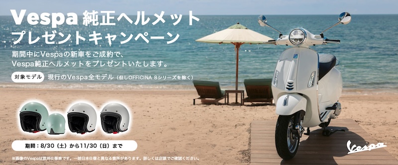 新車のベスパを 購入で純正ヘルメットをプレゼントするキャンペーンを実施
