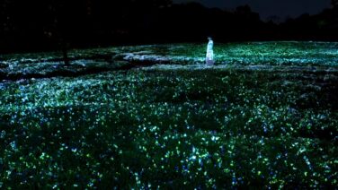 「チームラボ ボタニカルガーデン 大阪」で、一面のネモフィラが夜の植物園で光り輝く作品を今年も公開。展示期間は、4月10日(木)から5月18日(日)まで。