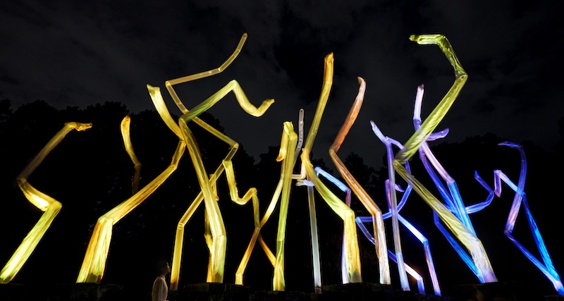 「チームラボ ボタニカルガーデン 大阪」、環境や人々の影響を受けて変容する作品《風と共に踊る柱群》を今年も公開。7月25日(金)から。音色を響かせる作品《光色の草原 – カピラリス》の作品エリアが拡張