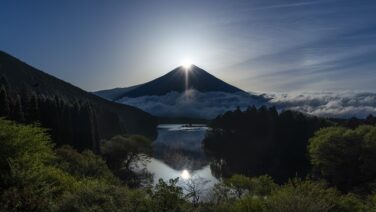 静岡県で唯一「ダブルダイヤモンド富士」が現れる田貫湖 4月20日から1週間の早朝がチャンス!~休暇村富士~