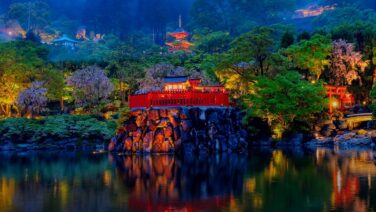 「チームラボ ボタニカルガーデン 大阪」、紅葉が見頃を迎え秋の景色に。《呼応する木々 – フウ》は紅葉に合わせた色で光輝き、《ラクウショウ並木》の木々は秋の色に。