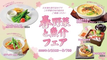 【新日本海フェリーの乗組員スタッフが考案した『フェアメニュー』がスタート!】 3/18(月)~5/19(日)出港の航海で、レストランフェア「船で堪能 寄港地めぐり」を開催いたします。 寒い冬も終わり、日本海にも春が訪れます♪この機会に日本海各地の名... -