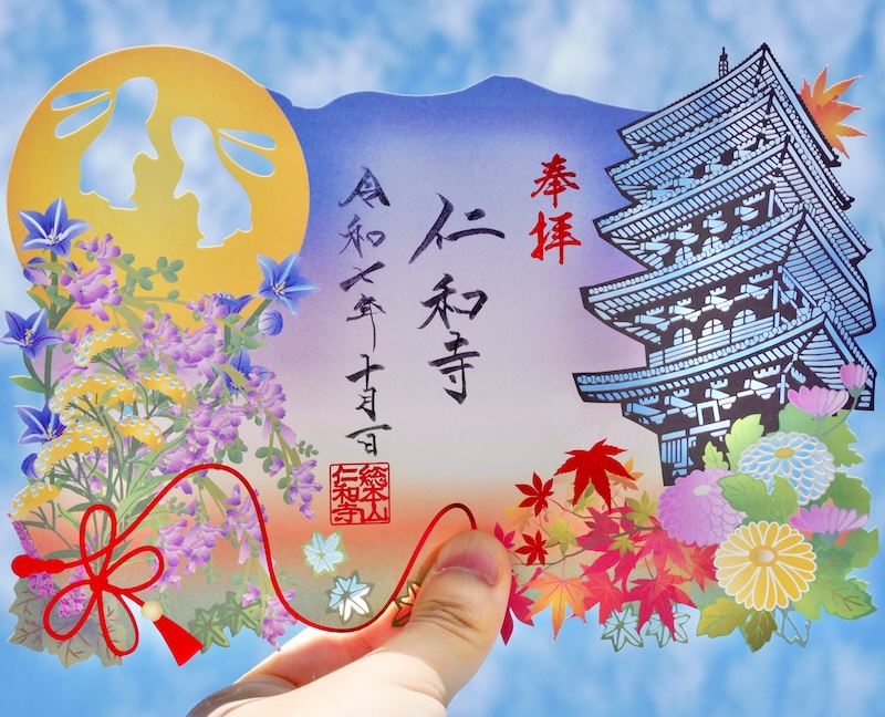 京都の世界遺産 仁和寺にて秋限定切り絵御朱印「十五夜 – 秋の仁和寺」の授与開始