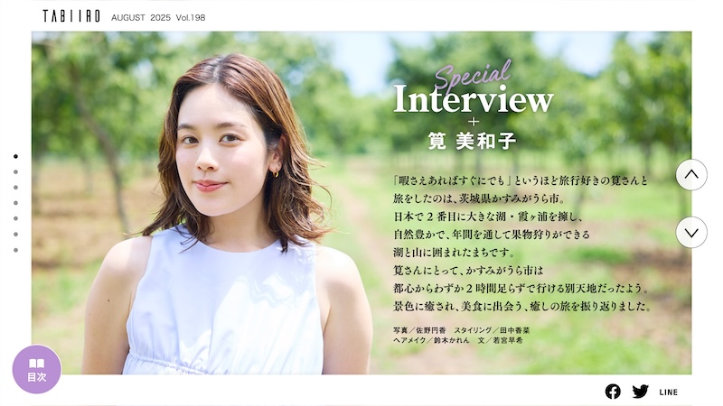 【阿波おどりを目前に控えた徳島市や自然豊かなベッドタウン立川市の特集も】 株式会社ブランジスタメディアは、表紙に筧 美和子さんを迎え、茨城県 かすみがうら市と提携し、同市を特集した電子雑誌「月刊 旅色」2025年8月号を本日公開しました。筧さんが... -