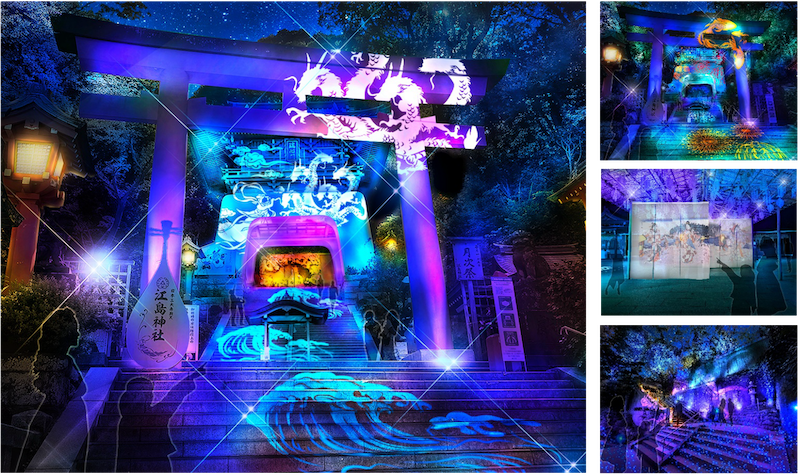 「江の島灯籠2025」 7月19日(土)より開催 江島神社 瑞心門〜石段〜辺津宮を華やかに彩る“光の絵巻”は、浮世絵を用いた新たな映像演出でより幻想的に進化