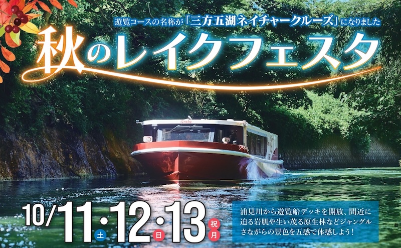 秋のレイクフェスタ~浦見川で遊覧船デッキを開放!三方五湖ネイチャークルーズの運航を開始します~10月11日(月)~13日(火・祝)