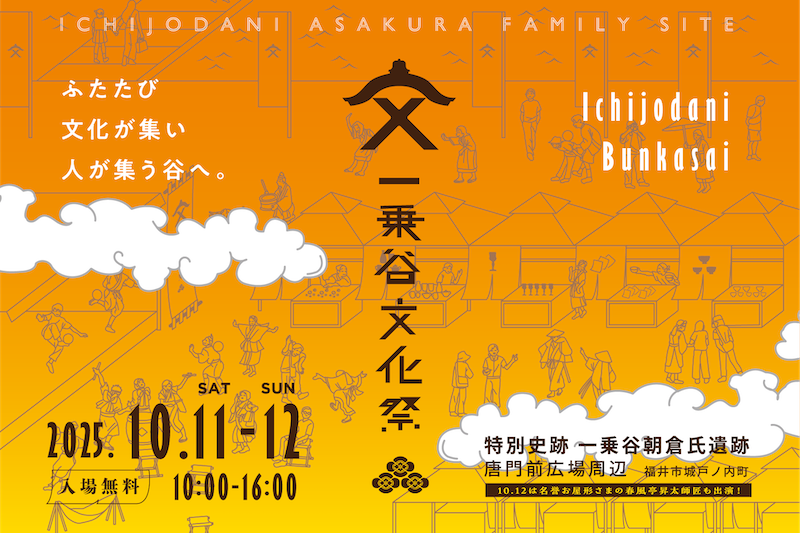 【10月11日・12日 秋の里山が美しい遺跡の中で往時に思いを馳せるひとときを】 福井県福井市にある特別史跡一乗谷朝倉氏遺跡にて、福井県クリエイター協会がプロデュースするイベント「一乗谷文化祭」を、2025年10月11日(土)・12日(日)の2日間開催し... -