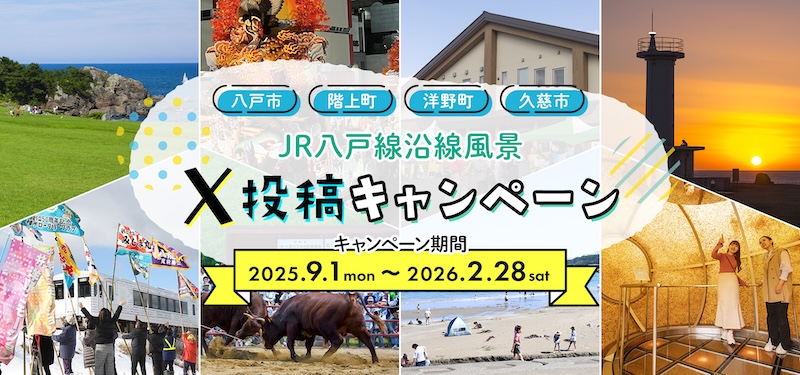 隠れた見どころの発掘・再発見を通じて、沿線の魅力を広く発信。9月1日(月)〜翌年2月28日(土)の期間限定で実施 JR八戸線利用促進協議会は、JR八戸線沿線の魅力を広く届ける誘客事業の一環として、X(旧Twitter)で参加できる「JR八戸線沿線風景X投稿キ... -